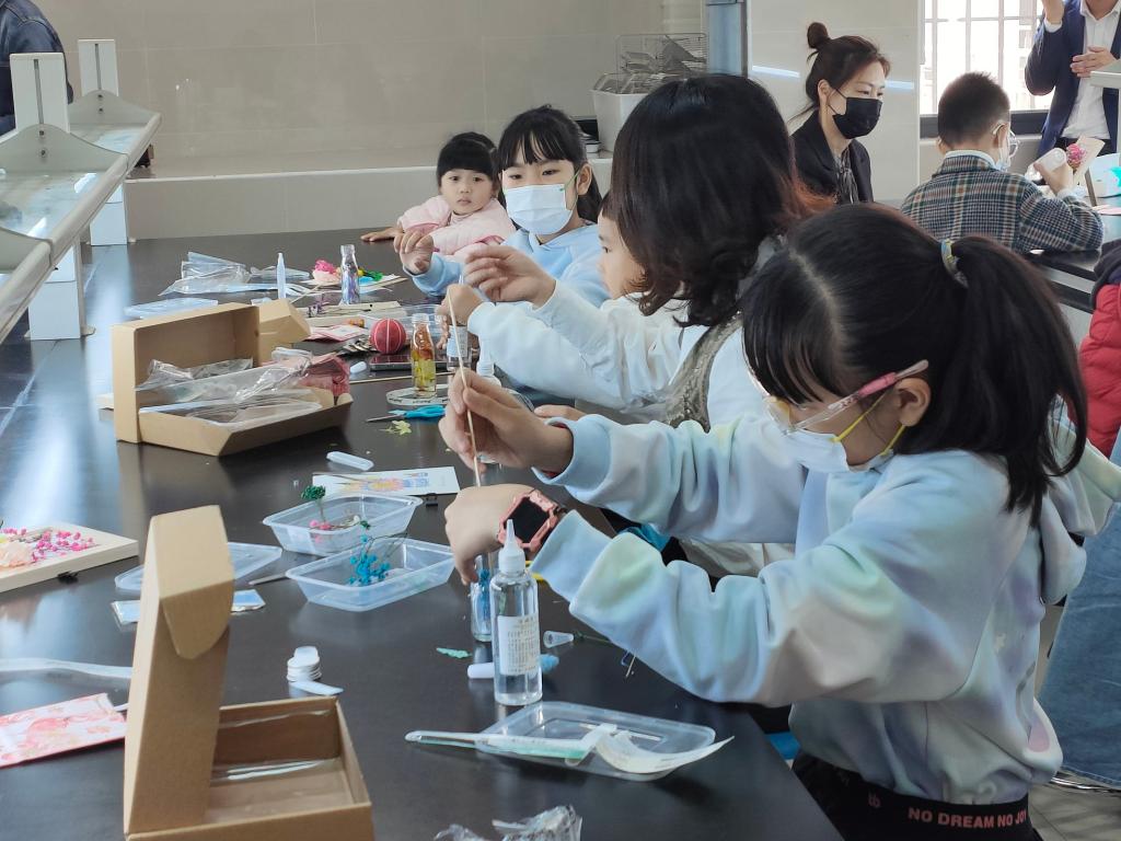 本次活动有十余组家庭参与,由生命科学公司教师刘凯良、阮俊峰带领参观动植物标本馆。两位老师耐心细致地向家长、孩子介绍动植物标本,解答他们的疑问。刘凯良还为小朋友们进行了专业知识科普,介绍植物标本制作的流程。而后,在两位老师的协助讲解下,小朋友们和家长共同成功制作出了属于他们自己的干花相框和浮游瓶。此次手工活动,充分培养了小朋友的动手能力和审美能力,也增进了亲子关系。最后,工作人员带领小朋友们参观BB贝博艾弗森,并介绍了校园内的各类植物。