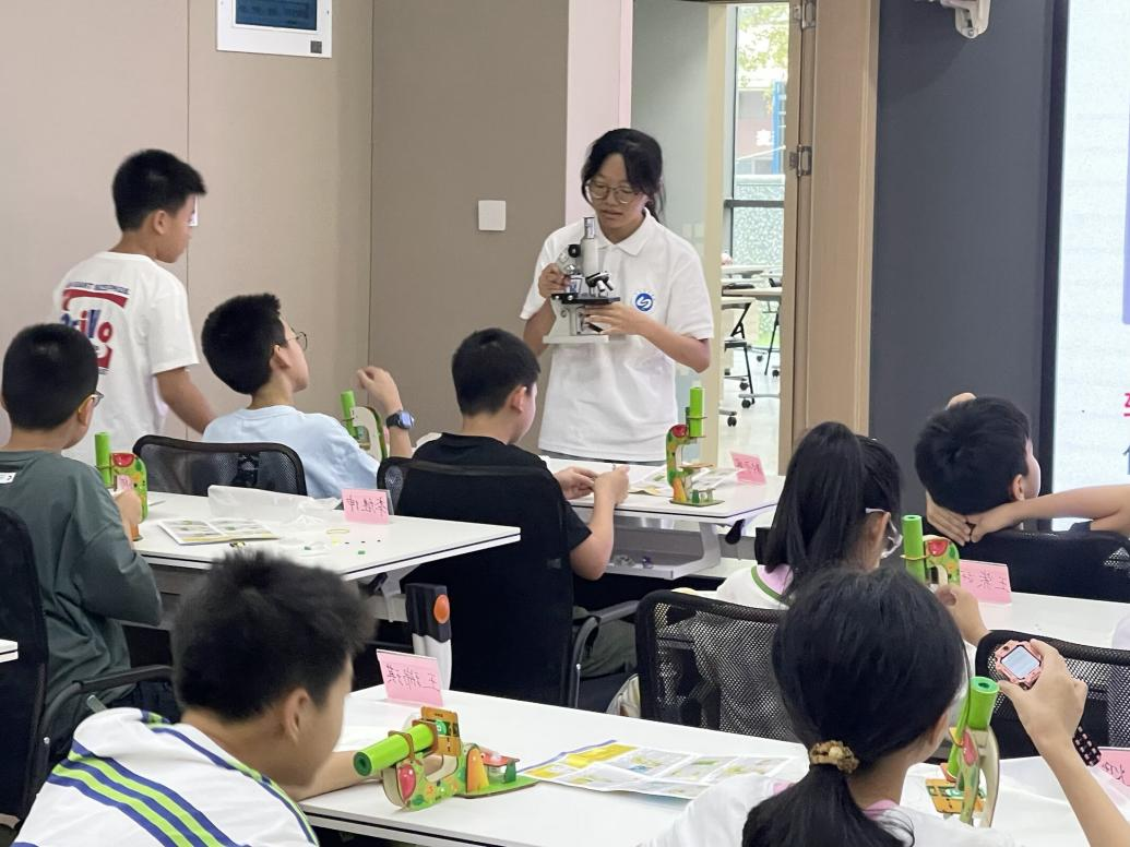 在刘凯良、王永吉老师的指导下,实践队员为孩子们讲解了微观生物知识及显微镜操作方法。通过观察洋葱表皮细胞、组装简易显微镜等实践环节,活动有效激发了孩子们的科学兴趣,锻炼了动手能力和观察思维。