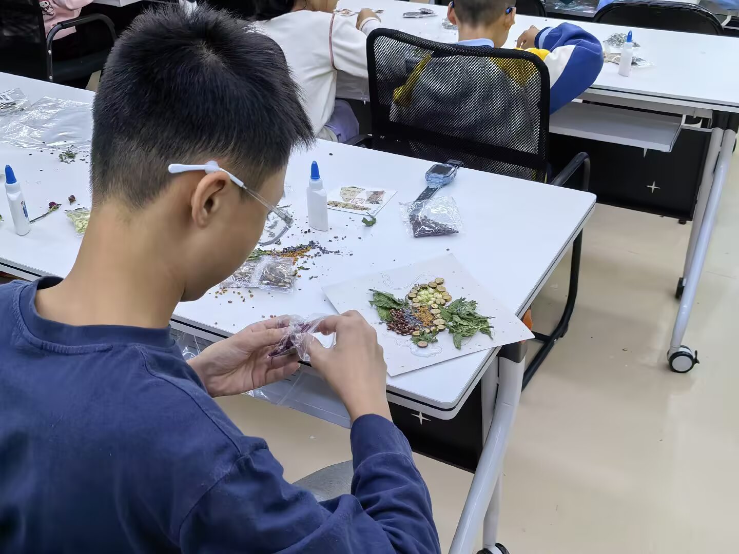 整个活动现场充满了乐趣与和谐,孩子们展示了自己制作的中草药植物标本,每一件作品都体现了他们的创意与努力。通过此次活动,不仅使孩子们感受到自然万物蕴含着的科学价值和自然的生命之美,还锻炼了孩子们的动手能力。