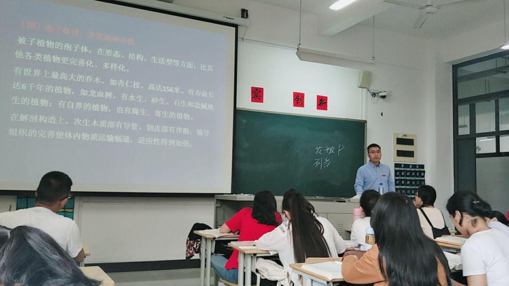 4月24日上午1-2节,刘凯良老师在CB201开设《植物生物学(二)》公开课,讲授内容为被子植物。刘老师以提问方式回顾裸子植物内容,进而导入本节课程;结合生活实例讲解被子植物主要特征,有助于员工轻松记忆并掌握概念。讲解木兰科植物时,直观展示常见植物图片,员工容易识别该科植物及理解特征。整体来看,教师教态自然,有激情;授课内容重难点突出,讲授过程循序渐进,思路清晰;达到了预期教学目标与课堂效果。