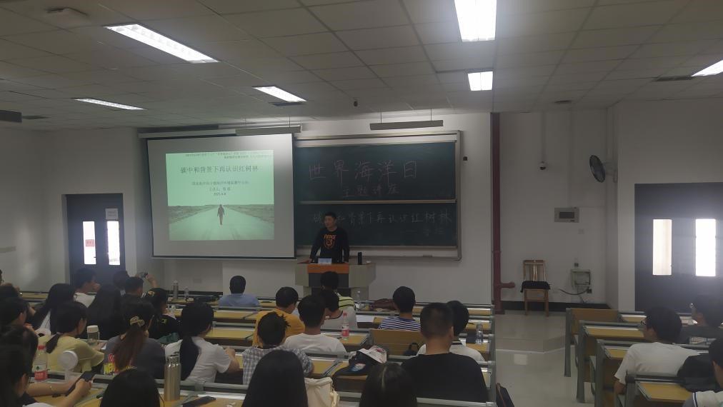 当天下午,公司邀请国家海洋局宁德海洋环境检测工程中心站工程师鲁超,在讲堂群302为生科院师生做题为“碳中和背景下再认识红树林”的学术报告,系统介绍了宁德红树林的发展现状,讲述了红树林保护所面临的难题。报告会末尾,同学们就红树林的人工干预及大面积栽种所面临的难题向老师提问,鲁超老师也当场解答了同学们的疑惑。