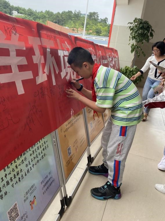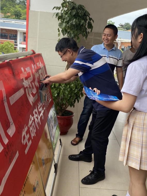 6月8日中午11:00,海洋资源开发技术系组织员工在旧食堂二楼摆设宣传点,志愿者们积极为路过的老师和同学们讲解宣传单的内容:“保护海洋生物多样性,人与自然和谐共生”的纪念世界海洋日主题;总书记关于建设海洋强国的信念;宁德市海洋渔业发展现状等相关知识。师生们纷纷对此活动表示支持,两百余人在横幅上留下了自己的签名。