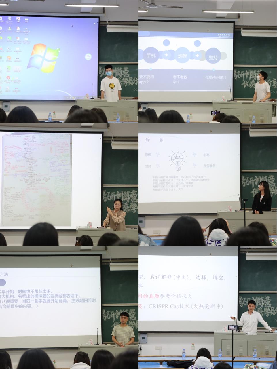 为让公司考研员工更好了解考研形势。公司于2022年5月22日在CC201举办考研训练营优秀学员分享会,公司生物技术系副教授史辉、2018级辅导员王珂参会。