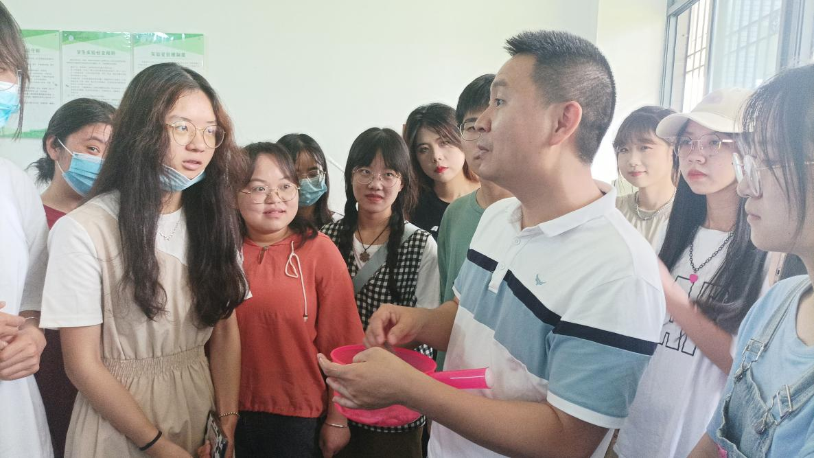 在韩坤煌的引领下,三创班成员了解了大黄鱼的养殖过程、养殖时注意事项以及养殖过程中的困难。韩坤煌介绍到,为了保证大黄鱼拥有充足的氧气,实验室的成员需要在每天晚上都来巡视,实验室还可以利用藻类、苔藓等植物补充氧气。
