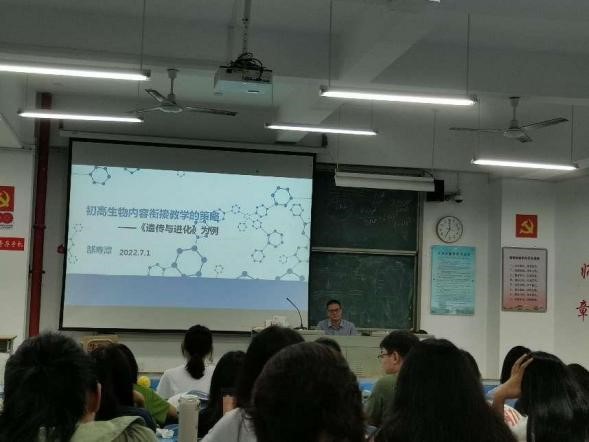 2022年7月1日晚上7点,霞浦县第六中学教师郜寿潭在求实楼C201开设主题为《初高生物内容衔接教学的策略》的讲座。参加讲座的有2019级生物科学班全体员工。