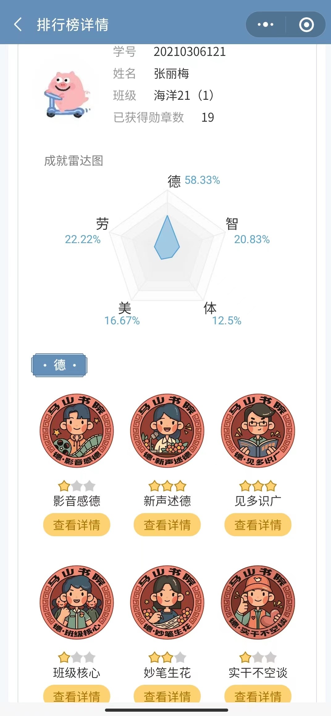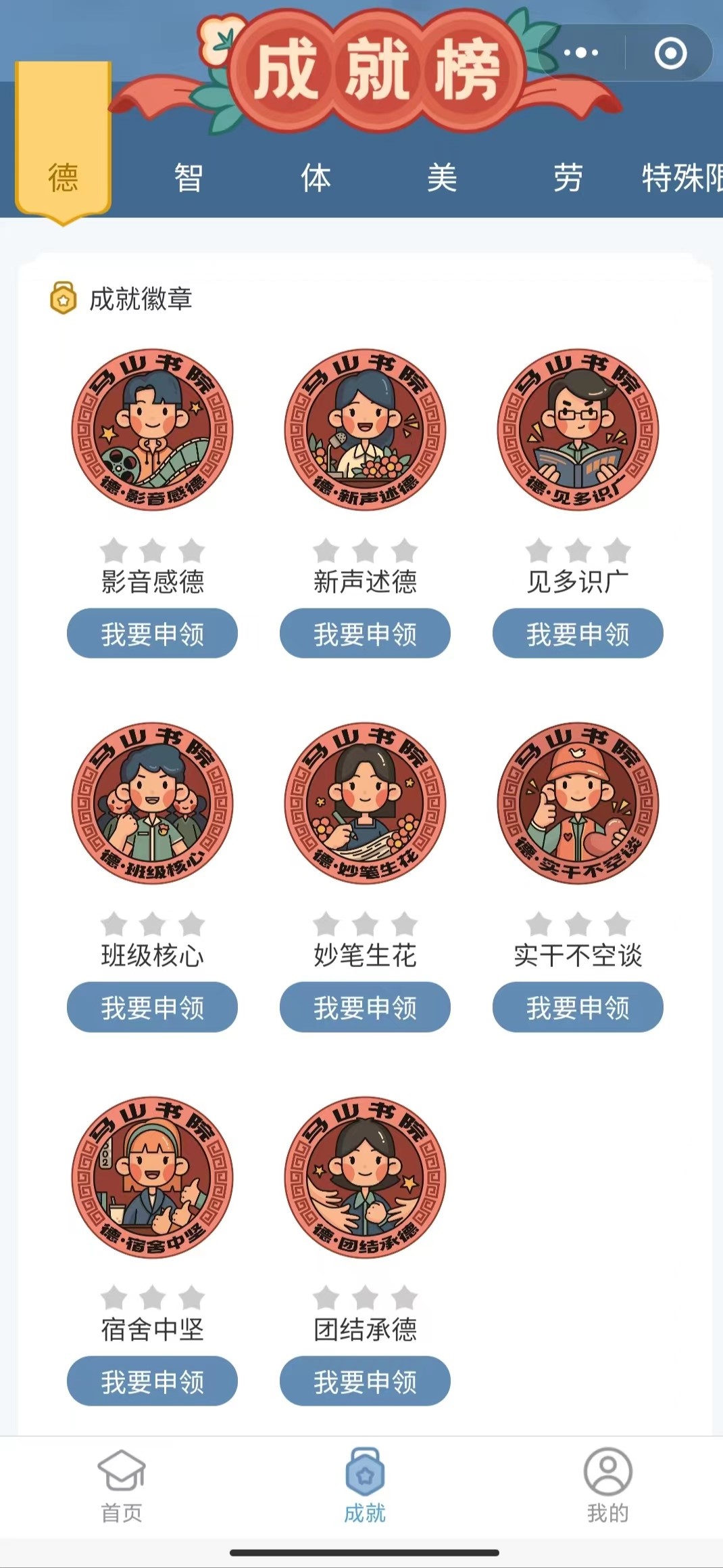 《马山书院》员工成就系统界面