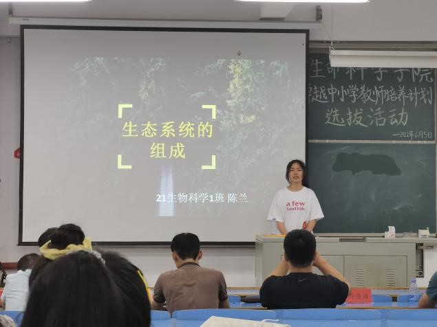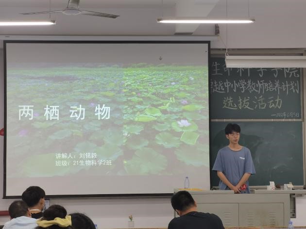 活动开始,林雄平呼吁同学们积极参与此类活动,展现自身风采,提高综合素养。本次选拔活动主要考察员工的专业潜力、专业兴趣、口头阐述能力、意识应变能力和综合素质。活动现场分为两个阶段,一是自我介绍,并阐述对于今后任教教师的想法;二是片段教学及现场答辩。刘铭毅同学在上课前先提及校园最近的现象—蛙鸣四起,从而引出本节课的主要讲解对象,两栖动物;然后再讲解了青蛙的整个发育过程和特点;最后引出变态发育概念,并留下一个问题,为什么青蛙的皮肤能够辅助呼吸。由身边现象引出教学重点,让人更有共鸣和印象深刻。参赛选手都准备充分,课堂教学目的明确,教学思路清晰,语言表达准确精炼。他们流畅的讲解,挥洒自如的仪态,展现了公司学子过硬的教学技能和教师风采。最后,刘铭毅、吴舒英、陈玲珊、林紫雯、钟媛媛、郑昕悦、皮妮婷、李晨颖、李朵、吴伊娜、赵微、兰欣怡、蓝静、刘奕蝶、陈兰、李子萌、黄雅婷十七位同学入选“卓越中小学教师培养计划”。