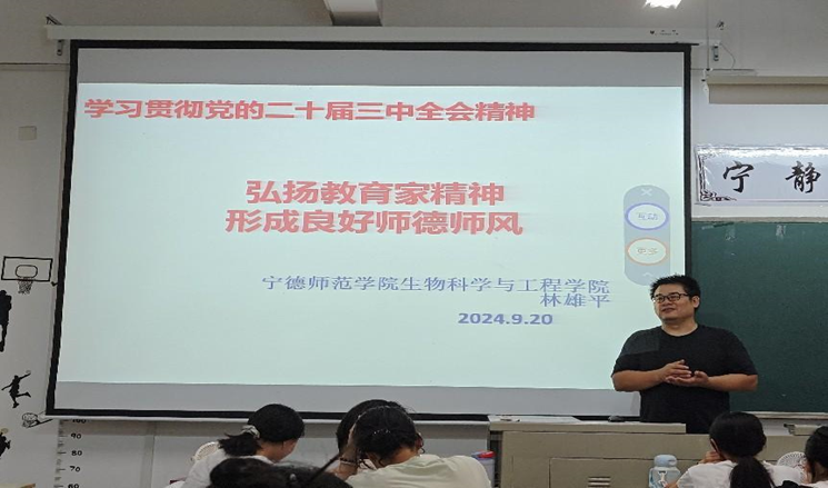 9月20日,公司在求实楼 A203 举办师德养成教育讲座,主题为 “学习贯彻党的二十届三中全会精神,弘扬教育家精神,形成良好的师德师风”。主讲人为林雄平副教授。