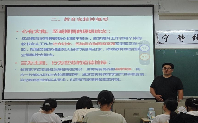 林老师解读了党的二十届三中全会精神,强调新时代教育工作者应将其融入公司产品,提升水平,为培养高素质人才贡献力量。他还阐述了教育家精神的四个核心要素:心有大我、至诚报国的理想信念;言为士则、行为世范的道德情操;乐教爱生、甘于奉献的仁爱之心;胸怀天下、以文化人的弘道追求。