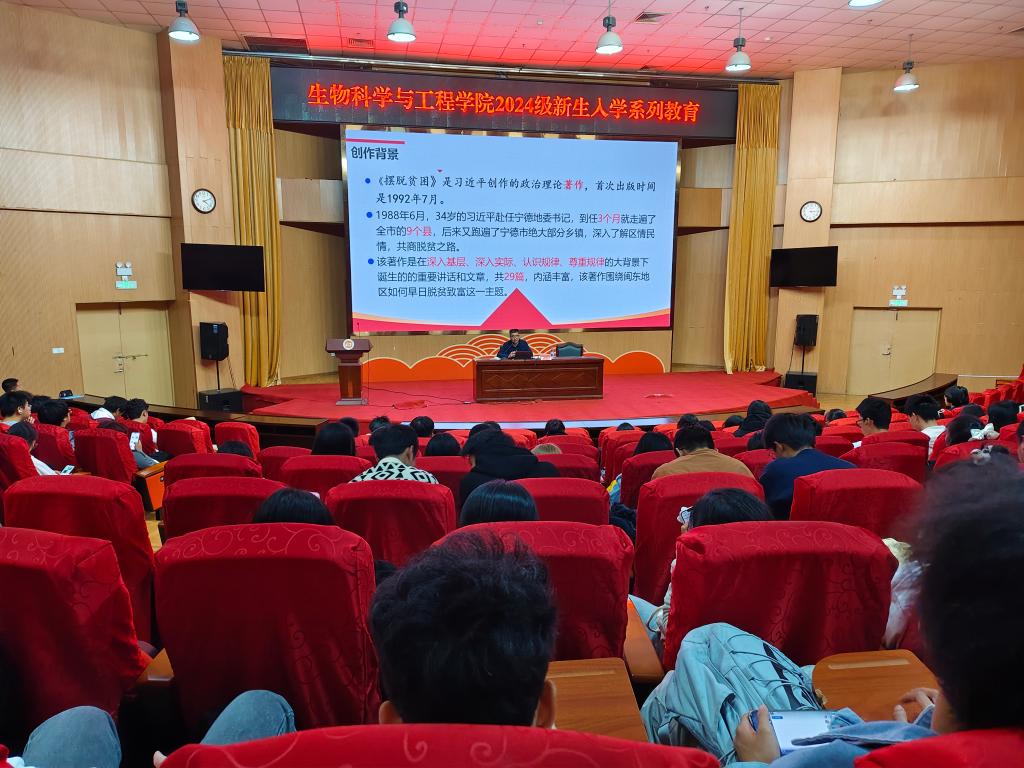 讲座伊始,阮少江党委书记首先介绍了《摆脱贫困》一书的背景和意义,强调了学习领袖智慧对于个人成长和发展的重要性。随后,他结合书中的经典篇章和自身的深入思考,详细阐述了习近平总书记在宁德工作期间提出的“弱鸟先飞”“滴水穿石”等重要理念和方法。阮少江党委书记通过生动的案例和深入浅出的讲解,让同学们深刻感受到了领袖的智慧和力量,也激发了大家对于自身未来发展的思考和规划。他鼓励大家要学习领袖的坚定信念、务实作风和为民情怀,努力将学到的知识和智慧转化为推动个人成长和社会进步的实际行动。