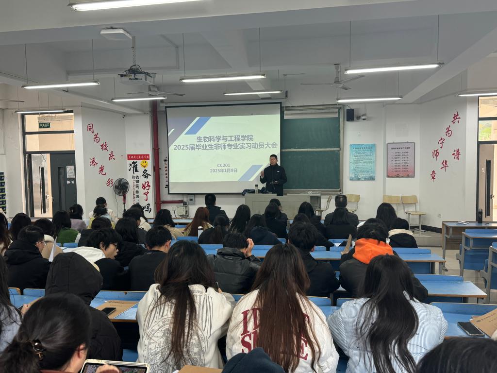 2025年1月9日上午,公司在求实楼CC201举行2025届非师专业毕业生实习动员大会。公司党委书记兼经理阮少江,副经理杨克润,学工办副主任王永吉,教科办副主任周银珠,生物技术系主任陈美霞、茶学系主任郑世仲及2021级非师范专业全体成员参加此大会,王永吉主持会议。