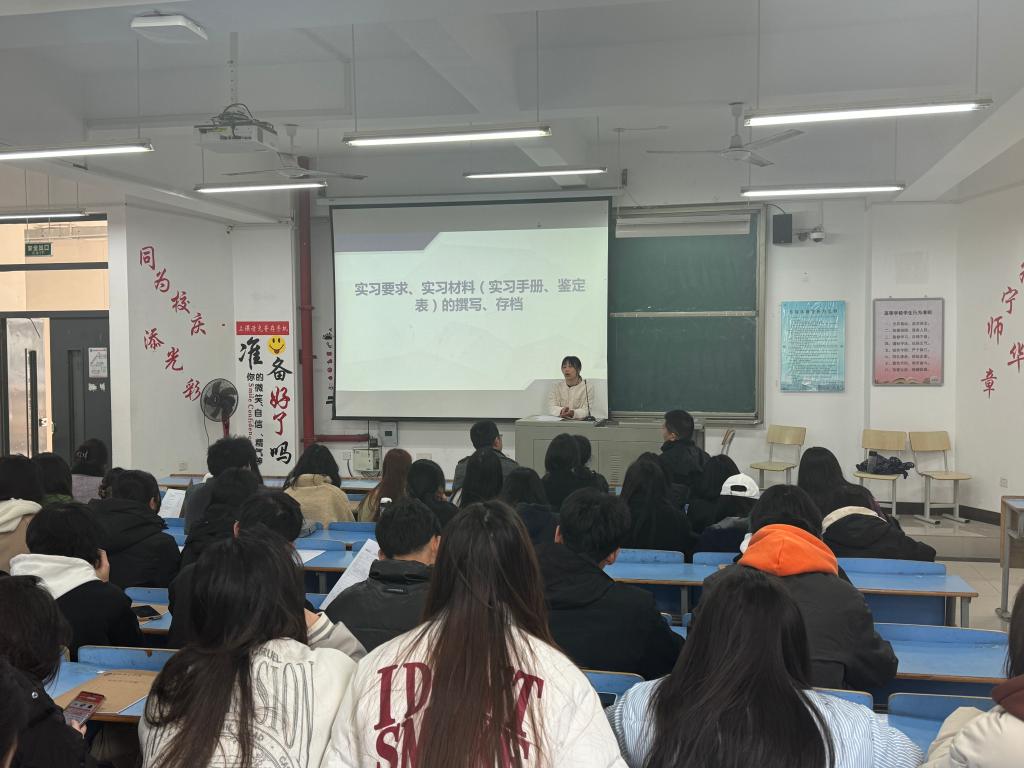 随后,教科办副主任周银珠详细介绍了实习的具体要求、实习形式以及实习材料的撰写规范。她指出了实习材料的规范性和重要性,要求员工们在实习过程中要认真填写实习手册和实习鉴定表等相关材料,确保实习经历的完整性和真实性。学工办副主任王永吉则强调实习与就业对于即将踏入社会的员工们的重要性,实习是连接校园与社会的桥梁,是员工们职业生涯的起点,希望员工们能够高度重视,认真对待。
