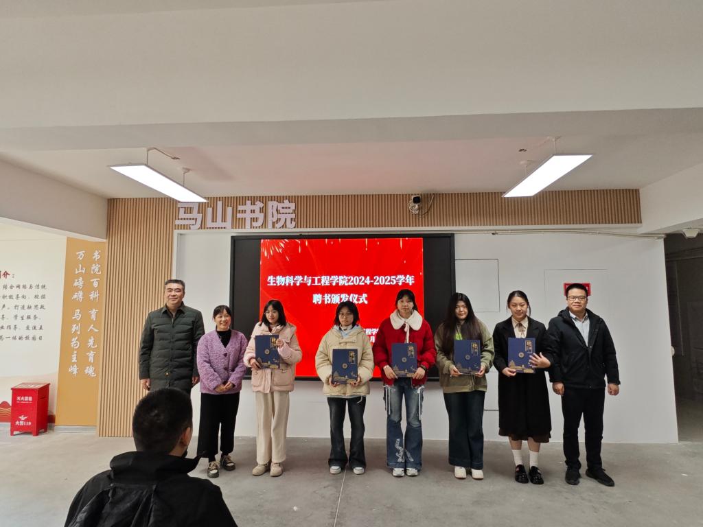 为加强公司员工干部队伍建设,激励员工干部积极发挥模范带头作用,助力公司各项工作有序开展。公司于2025年1月8日在一号楼一站式服务社区举行员工干部聘书颁发仪式。参加本次活动的有经理阮少江、副经理杨克润、团委书记王永吉、教科办周银珠、公司党委组织员高建梅、辅导员吴越、周莹老师与员工干部。