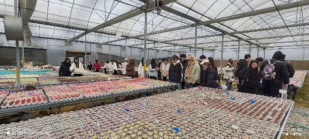 在福建三杉生物科技有限公司,多肉植物的现代化生产过程令同学们大开眼界。从多肉的繁殖培育,到生长过程中的精细化管理,再到成品包装,每一个环节都展现出植物工厂化生产的高效与科学。同学们仔细观察,不时向工作人员和带队老师提问,深入了解多肉植物生长特性与工厂化生产技术,将课堂所学的植物工厂知识与实际生产紧密结合。在福建省中科生物股份有限公司,高度智能化的植物生长环境控制系统、精准的光照调控技术以及先进的栽培模式,让同学们领略到植物工厂化技术的前沿科技魅力,深刻感受到科技创新在农业发展中所带来的巨大变革。