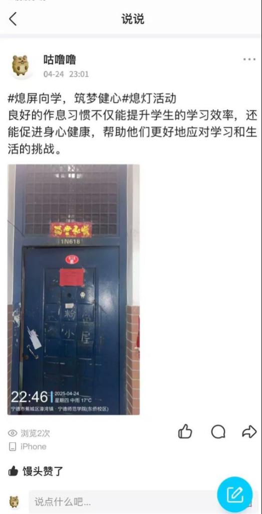 活动设置个人与宿舍双打卡机制,并采用“积分+荣誉”双重奖励机制。活动期间,同学们积极响应,以实际行动践行健康作息理念。不少员工表示,减少电子设备使用后,睡眠质量明显改善,学习时注意力更加集中。宿舍集体打卡模式更增强了同学间的协作意识,营造了互助互促的氛围。