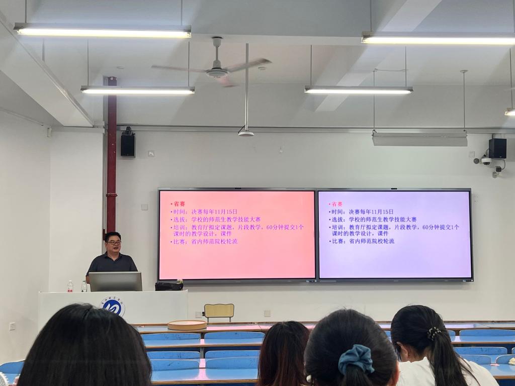 在“师范生教学技能竞赛及学科专业竞赛指导”讲座中,林雄平老师详细介绍了田家炳杯、师范生教学技能大赛等重要赛事,并展示了近年来公司员工在这些比赛中获得的奖状,激发了同学们的参赛热情。他指出,参加此类竞赛是提升教学能力、展现专业水平的重要途径。林老师为同学们讲解了备赛要点:了解比赛规则是参赛的基础,只有明确规则,才能有的放矢地准备;在教学设计方面,要注重创新和实用性,突出员工主体地位,合理运用教学方法和手段,提升教学效果。林老师鼓励同学们积极参与竞赛,以赛促学,不断提升自己的教学技能。