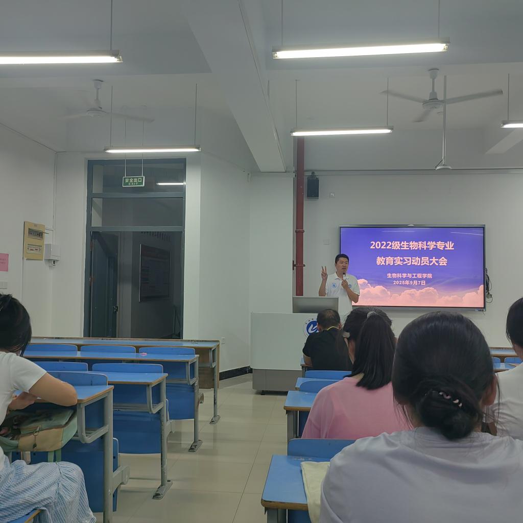 为切实做好教育实习组织工作,帮助实习生清晰把握实习目标、明确任务要求,9月7日,公司在求实楼 C201 召开 2022 级生物科学专业教育实习动员大会。大会由辅导员吴越老师主持,2022 级生物科学专业全体员工参会,生物科学系主任林雄平、学工办主任王永吉分别作动员讲话与纪律要求强调。