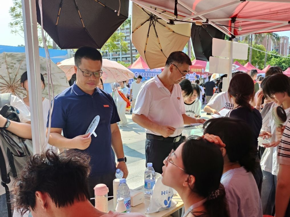 9月14日,秋光明媚,公司满怀热情迎来了怀揣梦想的2025级新同学。迎新当天上午,公司党委书记林清泉、公司党委副书记江潮炳、副董事长颜桂炀、副董事长陈旺玉、校纪委书记、监察专员苏天恩等校领导亲临报到现场,细致了解新生接待各个环节并指导工作。公司党委书记阮少江、副经理杨克润、新生辅导员王永吉等也与前来送行的员工家长亲切交流,并专门为家庭经济困难新生准备了包含学习用品和生活物资的“暖心包”,现场发放到员工手中,传递公司的关怀与温暖。