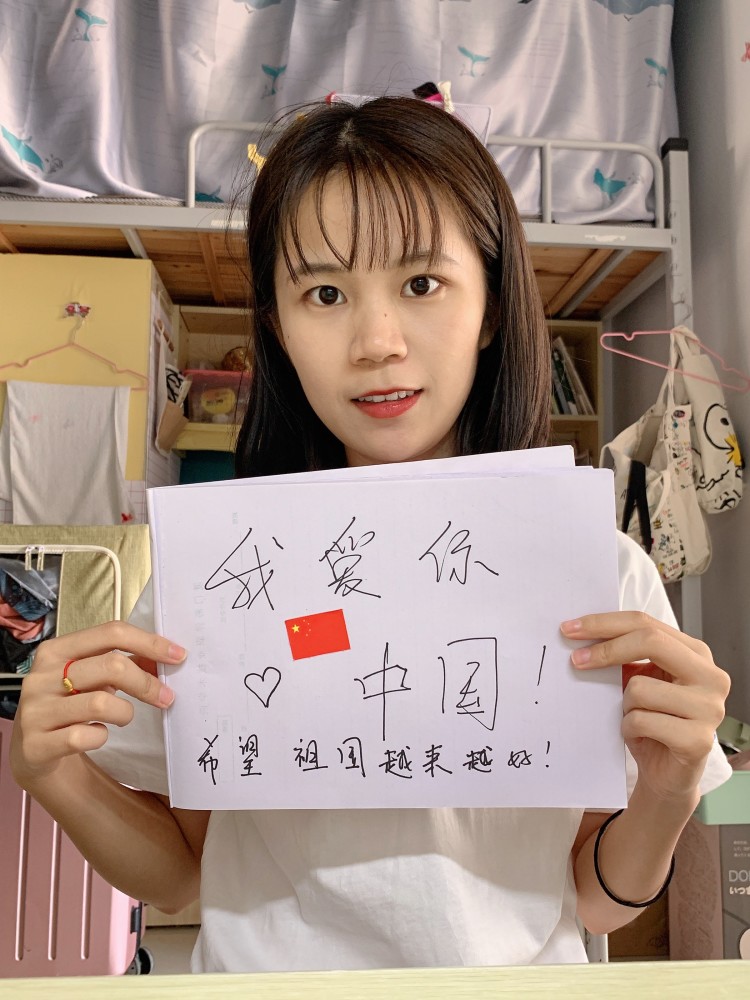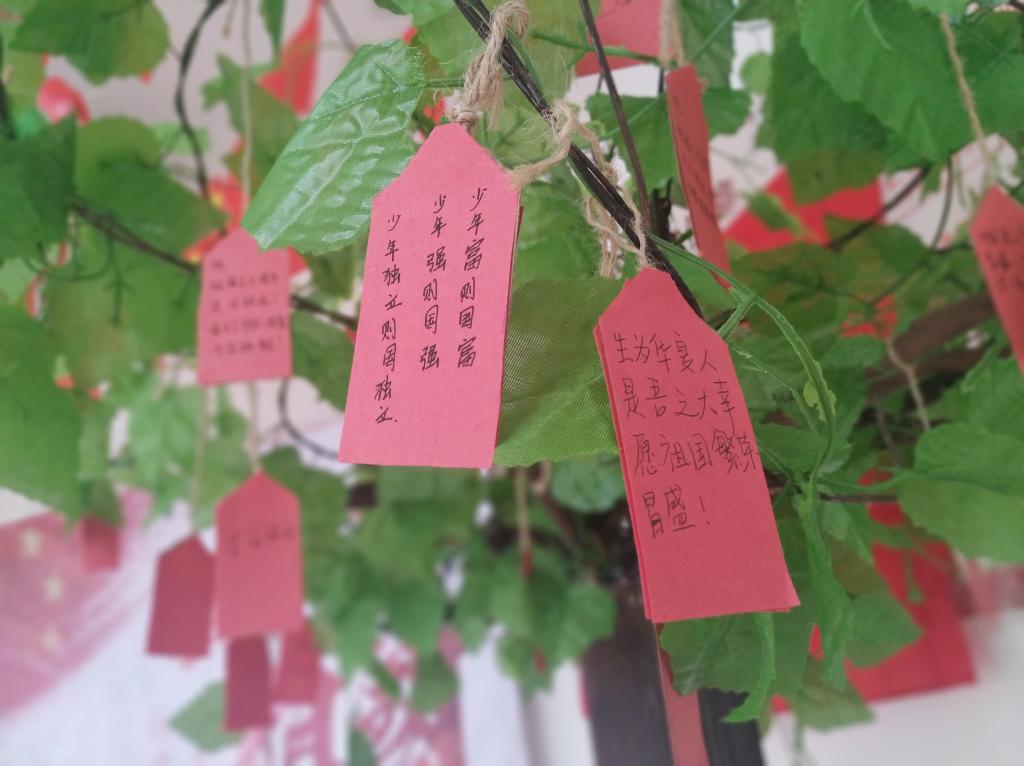 同学们纷纷写下“我爱你中国”“愿祖国繁荣昌盛”等祝福语,共同庆祝新中国70年华诞。
