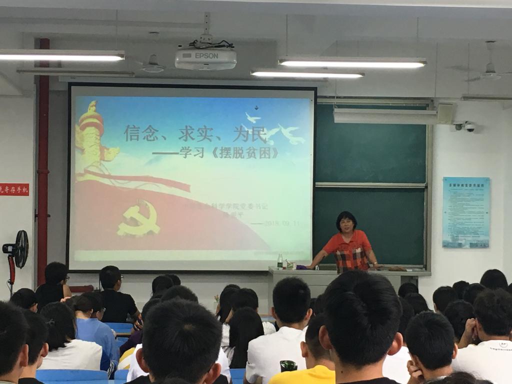 9月11日下午,公司党委书记陈爱平于求实楼C201教室为2018级全体新生开设《摆脱贫困》专题讲座。