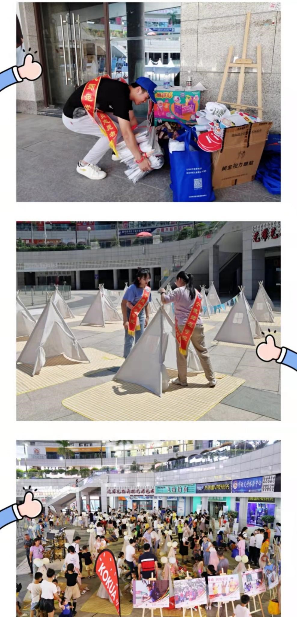 活动前期,员工党员提前来到现场帮助蓝丝带布置现场,如搬物资、搭帐篷、放广告画架等,天气即使炎热也抵挡不住大家的工作热情,只为给晚上来参加义卖活动的小朋友一个惊喜。