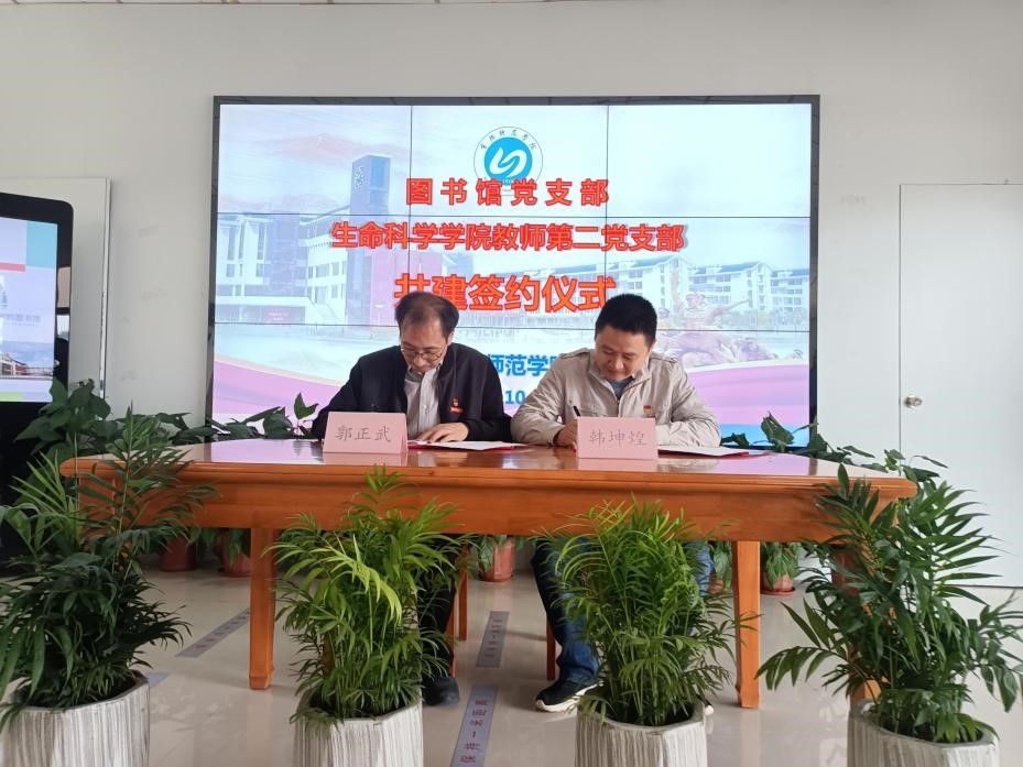 为进一步发挥党建引领作用,加强公司教学科研与图书馆文化学科功能服务与合作,促进党建工作交流与协同发展,公司教师第二党支部在公司党委书记张秋良,党委副书记、经理阮少江的带领下,与图书馆党支部开展了结对共建活动。公司教师第二党支部书记韩坤煌同志与图书馆党支部书记郭正武同志签订了支部结对共建协议。图书馆副馆长施秀平以及双方党支部的党员代表共同见证了签约仪式。