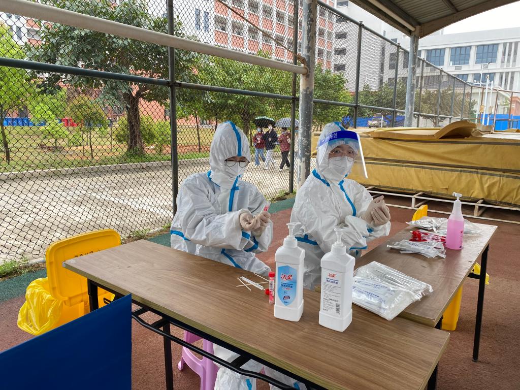 3月25日,支部教师党员林慧同志积极参与校园疫情防控工作,为医护人员准备核酸检测无菌棉棒,协助做好校园内全员核酸检测工作。