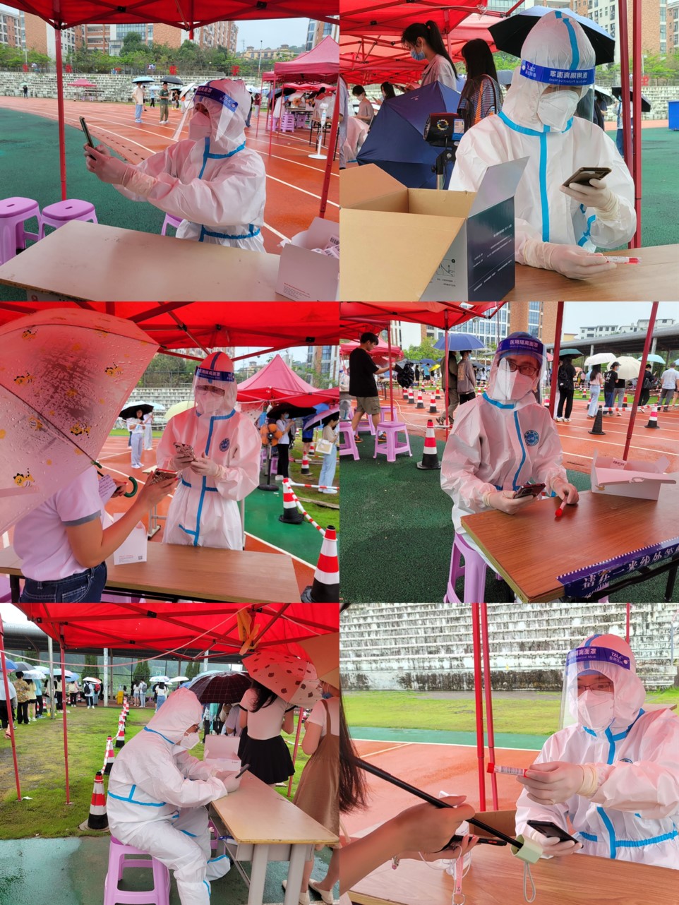为进一步筑牢校园疫情防控安全防线,确保广大师生的生命安全和身体健康,公司开展每日循环核酸检测工作。公司教师志愿者林志斌、刘春雷、韩坤煌、徐礼羿、阮俊峰和张承康积极协助校园核酸工作。