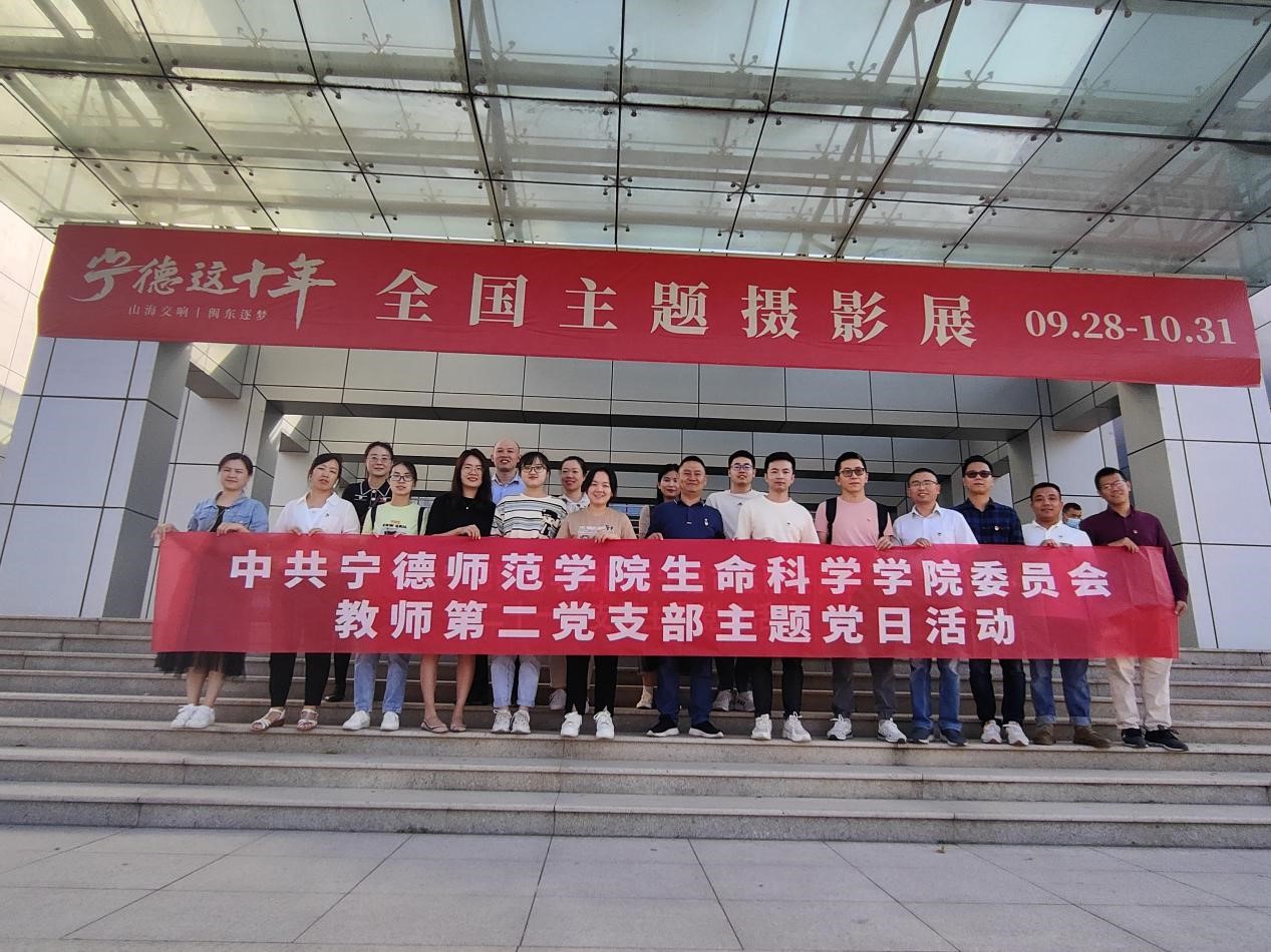 2022年10月14日,生科院教师第二党支部与市医院第二十一党支部联合开展主题党日活动。双方支部党员一同前往宁德市会展中心,现场参观学习“山海交响·闽东逐梦——宁德这十年”全国主题摄影展。这是两个支部共建以来联合开展的第五次主题党日学习活动。摄影展分为闽东之光璀璨夺目、滴水穿石久久为功、积极建设美好家园三个单元,并开设特别单元“摄影名家看宁德”、致敬单元“夏念长先生代表作品展”以及后记“奋力谱写宁德篇章”,集中展示精准扶贫的“宁德模式”,记录了闽东人民十年来在习近平新时代中国特色社会主义思想指引下,接续奋斗、苦干实干取得的突破性进展和历史性成就。