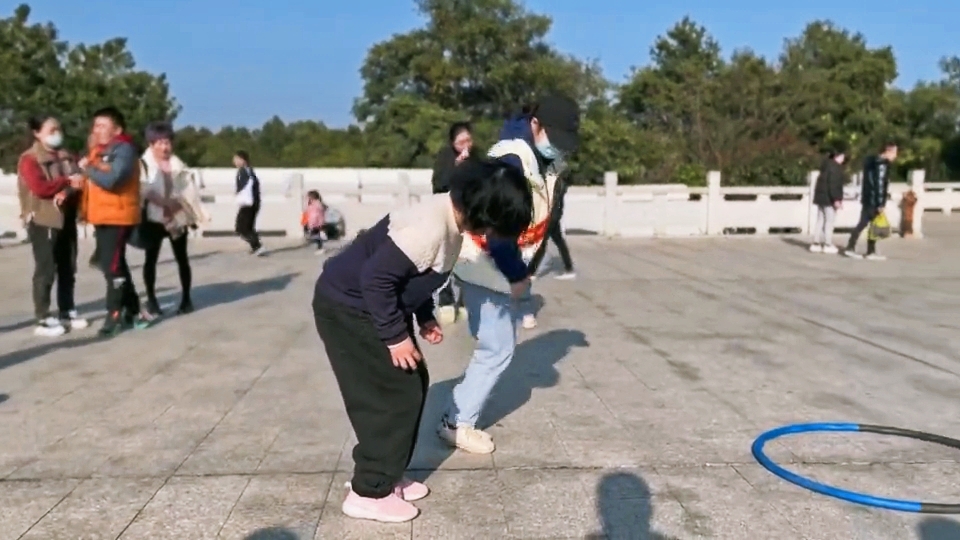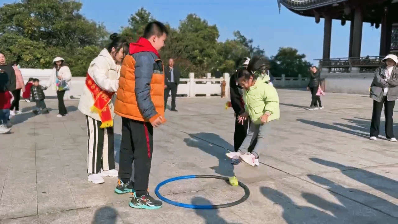 一小时后,全体人员成功登顶,于靖海楼前抬眼远眺,山海之城的全貌净收眼底。休息片刻后,到了激动人心的游戏环节,志愿者耐心引导小朋友们分成两队开始了沙包游戏。小朋友们在志愿者的陪伴下打开心扉,积极投入到游戏中去,绽放出灿烂的笑容,仿佛大山里刚开放的鲜花,绽放在最美的春天里。