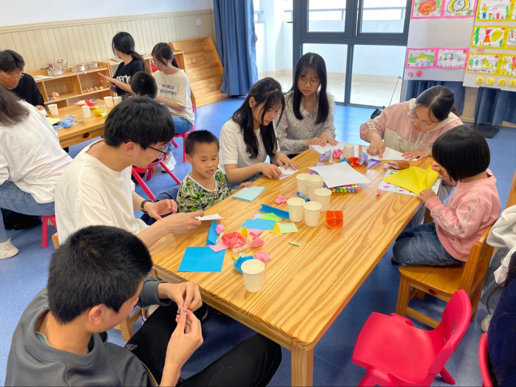 活动上志愿者们通过手工制作带领小朋友们开展各项活动,志愿者指导小朋友用卡片创意折纸,小朋友们很快就做出了多彩多样的折纸作品,如爱心、小船、千纸鹤等;随后的活动是“纸筒创意制作”,小朋友每人一个纸筒,利用桌子上的东西制作手工艺品,志愿者们给儿童提供制作样式。活动过程中,志愿者和儿童其乐融融,欢声笑语,做出了精致、奇特的纸筒创意作品;最后的“听歌”环节,小朋友们会不自觉地跟着音乐唱起来,表达出内心的快乐。
