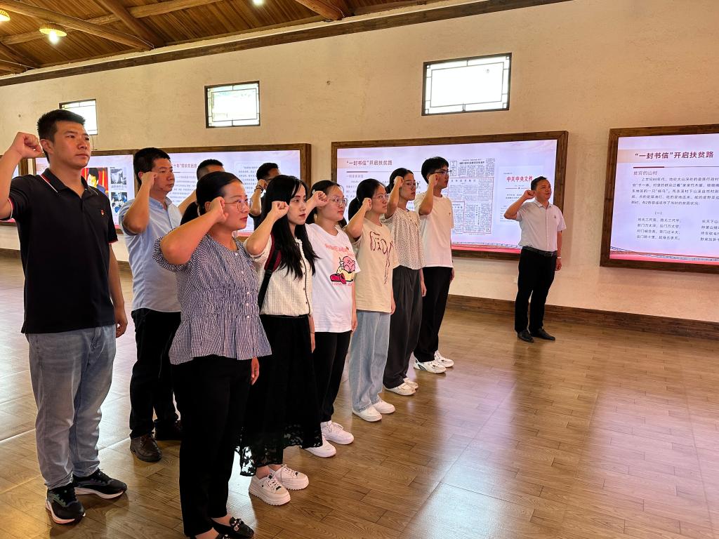 在扶贫展览馆,公司党委书记张秋良组织参会的师生党员面向党旗,重温入党誓词,共同过好政治生日。随后在会议室,张秋良带头分享自己入党初心,并强调今后要始终不忘入党的初心和党员的使命,为党育人、为国育才持续为我国教育事业奋斗终身。王楠楠指出,入党的初心和使命不能变,但责任意识要不断的提升。与会人员也纷纷分享了自己的入党初心。
