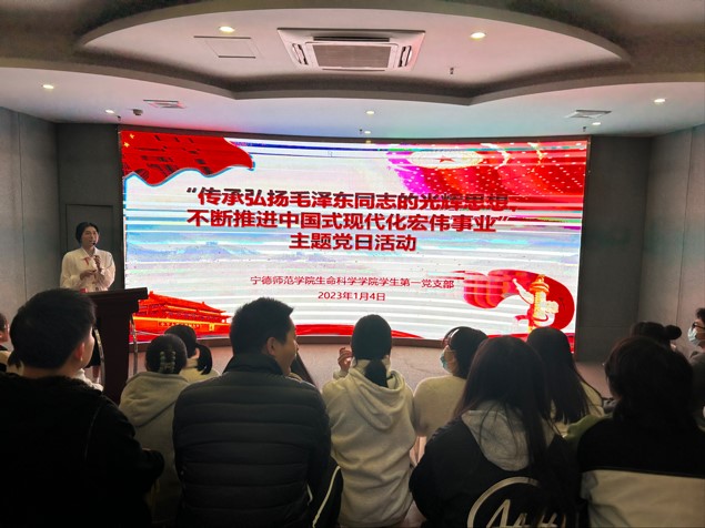 支部党员陈玲珊作为讲解员,带领大家参观了以宁德摆脱贫困历程和红色文化为主题的图文史料文献、实物展品等,党员们了解了宁德在“弱鸟先飞”、“滴水穿石”思想的指引下摆脱贫困的奋斗历程、闽东革命先烈红旗不倒坚持斗争的革命历史以及闽东革命老区今日的发展新貌、山海风情。参观完红色文化教育中心,全体党员在“闽东之光”交流互动馆学习了“习近平总书记在纪念毛泽东同志诞辰130周年座谈会上的的重要讲话”相关内容,毛泽东同志致力于人民解放、国家独立、民族复兴,选择为共产主义而奋斗终生。要把对毛泽东同志的怀念和崇敬之情转化为继续前进的强大动力,不忘初心、牢记使命。我们深切缅怀毛泽东同志,就要沿着毛泽东同志奠基的社会主义道路坚定不移走下去,坚持道不变、志不改,把新时代中国特色社会主义伟大事业不断推向前进,以中国式现代化全面推进强国建设、民族复兴伟业。