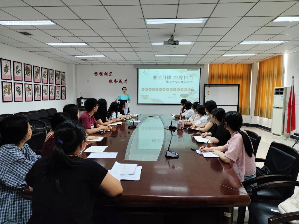 2024年5月31日,为深入贯彻新修订的《中国共产党纪律处分条例》中的廉洁纪律一章,加强毕业生党员的廉洁自律意识,生工院员工党支部书记林姗特别开展了一场以“廉洁教育 纯粹担当”为主题的专题教育活动。