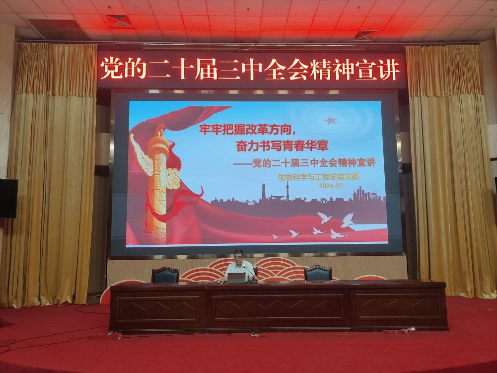 阮书记从深入学习领会习近平总书记在党的二十届三中全会上的讲话精神、全面准确理解《决定》提出的进一步全面深化改革重大举措、全力以赴抓好全会精神贯彻落实等方面对党的二十届三中全会精神进行了全面宣讲,并结合公司的专业特色,重点阐释了科技、教育、人才三个方面的改革论述。他强调,在新的历史起点上,全院师生不仅要掌握扎实的专业知识,更要紧跟时代步伐,积极响应国家创新驱动发展战略,努力成为推动生命科学领域科技进步的生力军。