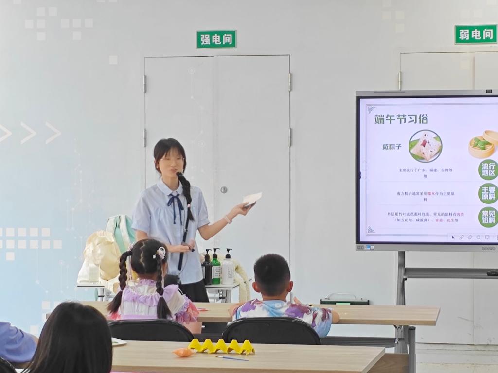 活动伊始,工作人员围绕端午文化主题精心布置场馆,准备鸡蛋托、彩泥、颜料、牙签等环保制作材料。在文化科普环节,讲解员通过图文并茂的课件与动画视频,系统阐释端午节的历史渊源、民俗内涵及赛龙舟的文化寓意,生动展现传统节日中蕴含的民族精神与文化智慧,为后续实践活动奠定理论基础。
