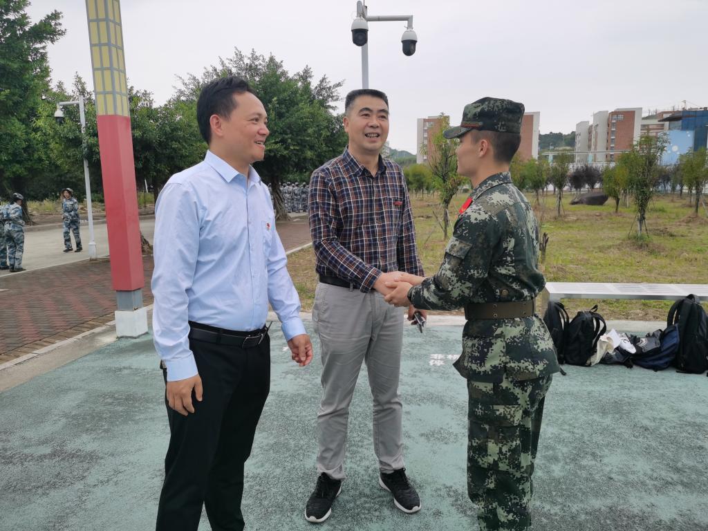 10月19日下午,公司党委书记张秋良,副经理阮少江及新生辅导员林慧老师一行前往军训场地看望慰问公司军训员工。