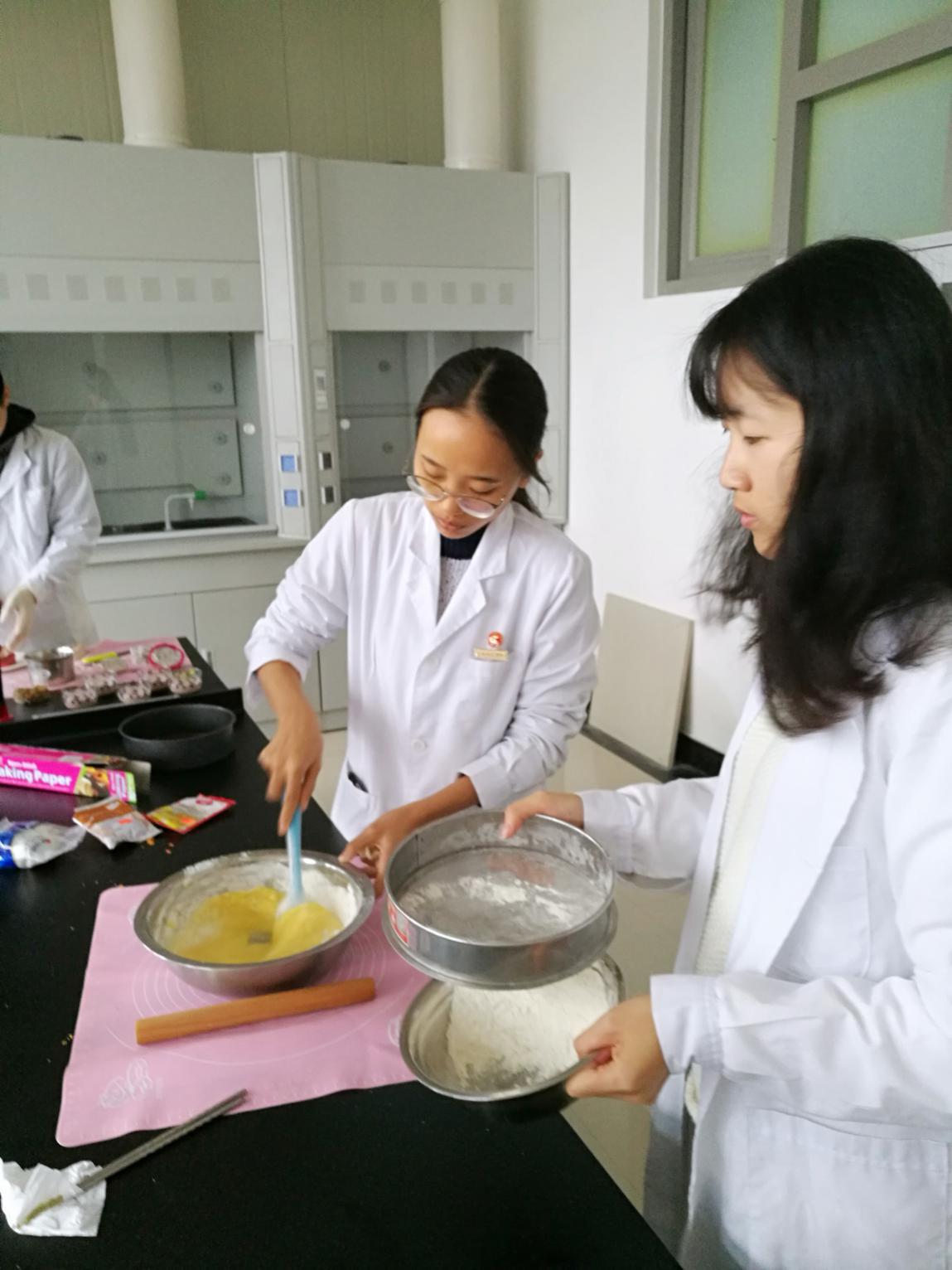 喜迎校庆60周年,11月17日至18日由公司举办的“烘出心艺 焙出创意”第一届糕点创新设计大赛在逸夫实训楼C栋三层食品感官评价实验室举行。本次比赛由公司党委书记陈爱萍、院员工工作办公室主任王楠楠和海洋与食品工程系副主任刘春雷老师共同策划,相关教师老师协同指导,并邀请院杰出员工、科研处唐圣娇科长和部分食科专业老师共同担任评委评价同学们的作品。
