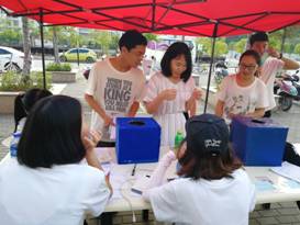 活动共分四个区域——看图答学名区、答题区、拓印制作区、植物介绍区。看图答题区展示的所有植物图片,均为校园角落的各类植物,大家对此纷纷表示出极高兴趣并积极参与答题过程。熟悉的模样却陌生的学名,极大的勾起同学们的求知欲,自然坊的工作人员借此向大家科普那些校园里常遇的植物,从而丰富公司同学的知识面。在拓印体验区中,同学们通过实地体验,即感受到植物拓印的天然与美丽,更了解到植物色素的由来。体验拓印的林同学说“第一次体验天然色素的效果,也进一步了解了什么是色素,在体验中学到了课堂上学不到的小知识,很好。”。