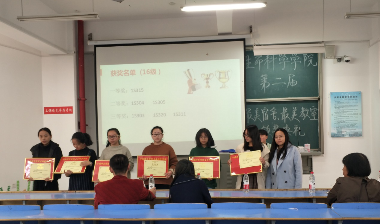 本次评选共有81间宿舍和12间教室参与,宿舍评选分为2015级、2016级和2017级三个年级进行评选,分别设一等奖一名,二等奖两名,三等奖三名;教室评选设一等奖一名,二等奖两名,三等奖三名,共18间获奖宿舍和6间获奖教室,此外还设置了最佳人气宿舍和最佳人气教室。