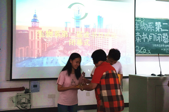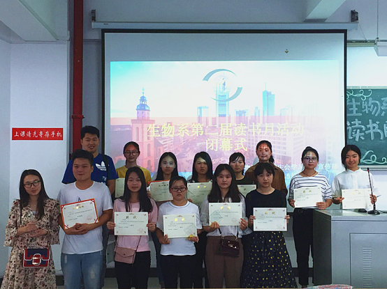 5月23日下午,生物系第二届读书月闭幕式于求实楼CC201举行。出席闭幕式的有系党总支书记陈爱平、系团委负责老师王永吉、14、16级辅导员林宏宇,主持人由16级员工林淑娟担任。