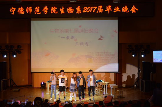 本届毕业晚会主题为“一载别,三秋远”。晚会经过一个多月的精心策划和筹备,于5月14日晚七点在图书馆报告大厅拉开帷幕,出席晚会的嘉宾有陈爱平老师、张维瑞老师、叶祖云老师、张荟英老师、缪莹老师、刘凯良老师、陈美霞老师、阮俊峰老师、林宏宇老师、王永吉老师以及即将毕业的2017届毕业生们。