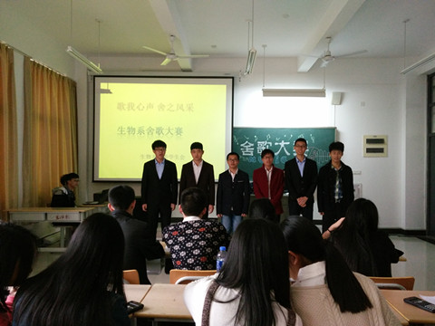 2016年03191500,我系第四届舍歌大赛初赛在求实楼成功举办。本次活动由生物系团委员工会组织部、劳卫部和生活部联合承办,活动对象为大一员工宿舍,比赛分为初赛和决赛,各宿舍各显神通,表现自己的风格,唱出了宿舍精神。无论是温情满满的《暖暖》,还是思绪万千的《拾年》,亦或是轻松甜蜜的《好想你》等,都唱出了宿舍之情的浓厚,充分展现了宿舍的风采和个人的魅力,让评委忍不住拍手称赞。其中10支队伍在初赛中脱颖而出,顺利进入了决赛。