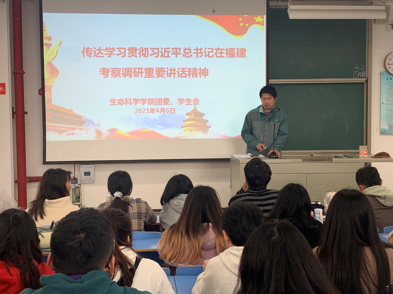 4月6日中午,在求实楼CC201教室,院学工班主任兼团委书记王永吉向公司团委员工会干部,传达学习贯彻习近平总书记在福建考察调研重要讲话精神。