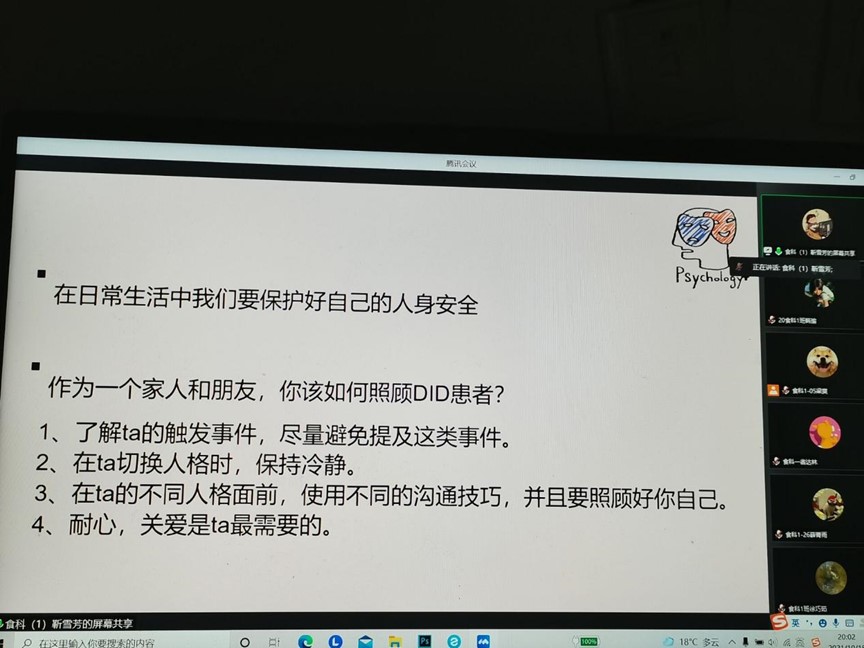 11月2日,由校员工发展与服务中心举办的线上心理主题班会活动完美落下帷幕,经公司筛选,校心理健康教育中心综合评审后,公司推送的队伍获一等奖一项、三等奖一项。其中2020级食品科学与工程班的靳雪芳、韩雨桐、韩瑜、钟莹诗、林桑共5人录制的“人格分裂——其实一直陪着你的是那个了不起的自己”主题班会获一等奖;2020海洋资源开发技术班黄淑涵、黄鑫岚、詹巧玲、朱琳共4人录制的“折殇成花,怀爱诉恩”主题班会获三等奖。