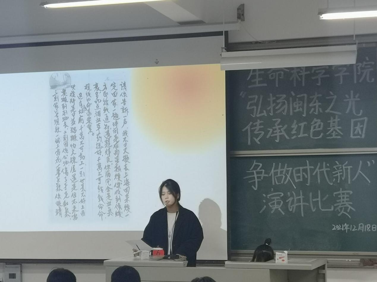 比赛中,参赛选手们回顾了中国革命历史,阐述了闽东精神的时代意义。选手们用饱满的热情、感人至深的故事、强烈的爱国之情感染着在场的评委和观众,赢得了场下一阵阵掌声,每位选手的演讲难分伯仲、各有千秋。经过精彩的角逐,陈玲珊荣获一等奖;苏钰萍、张丽梅荣获二等奖;王泓方、李晓莉、孙凯荣获三等奖;林楷迦、候肖娜、赵咏琪、陈焰彬、张美华荣获优秀奖。