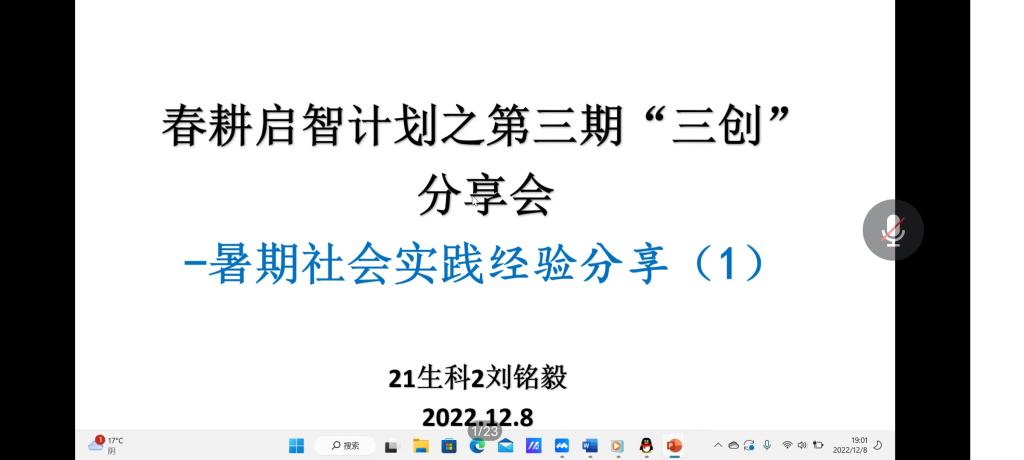 为增强公司老员工的志愿服务精神和社会实践能力。公司于2022年12月8日在线上举办第三期“三创”分享会。主讲人为暑期社会实践优秀团队成员刘铭毅同学。