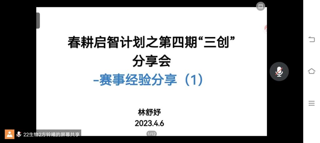 为培养公司员工创新创业能力,提升对“互联网+”竞赛的了解,公司于2023年4月6日在线上举办第四期“三创”分享会。主讲人为2020级生物科学林舒妤同学。