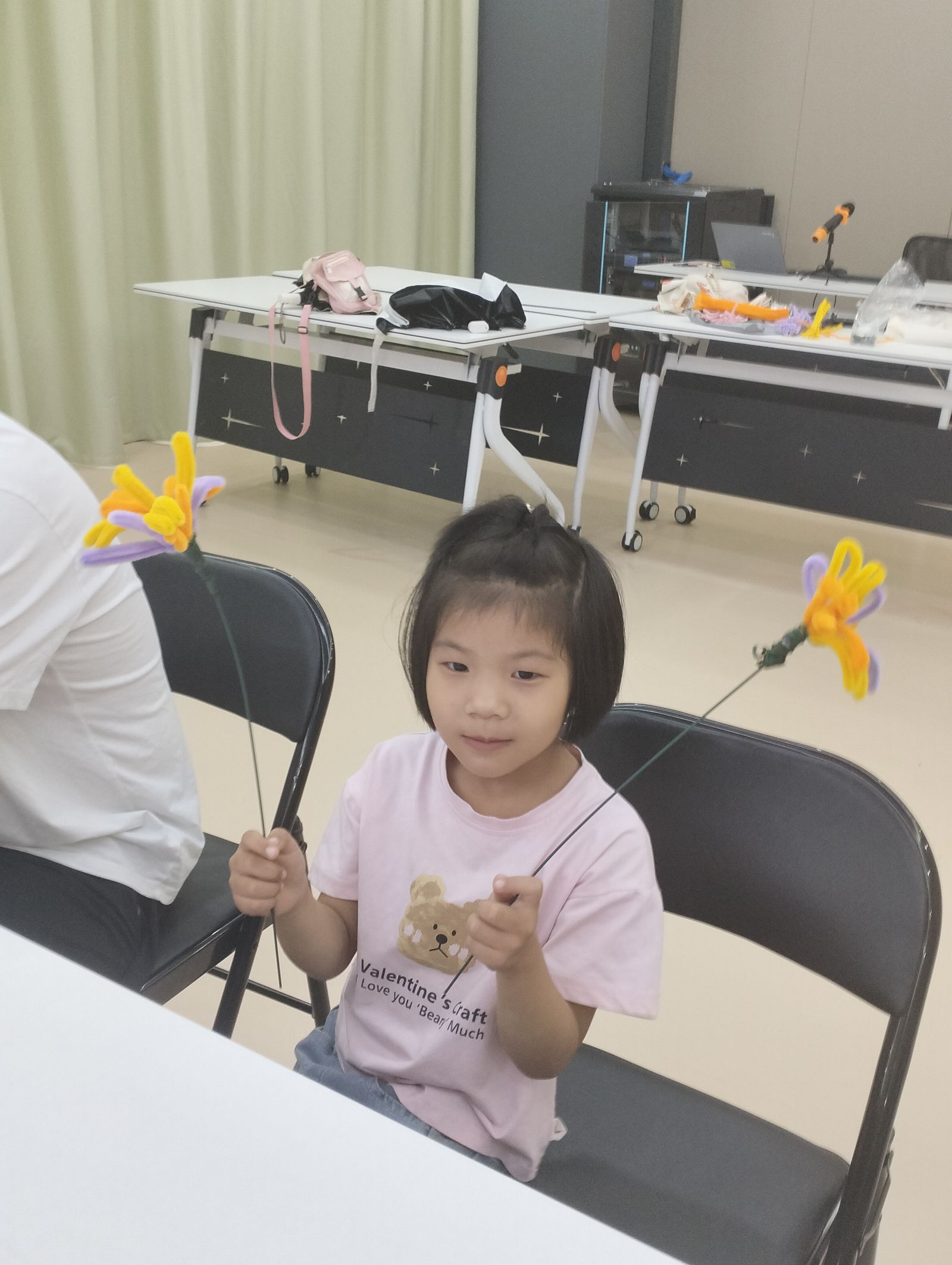 整个活动现场充满了温馨与和谐,孩子们展示了自己制作的扭扭棒菊花,每一件作品都体现了他们的创意与努力。通过此次活动,不仅传承了重阳节的文化,还锻炼了孩子们的动手能力,增强了家庭成员之间的情感联系。