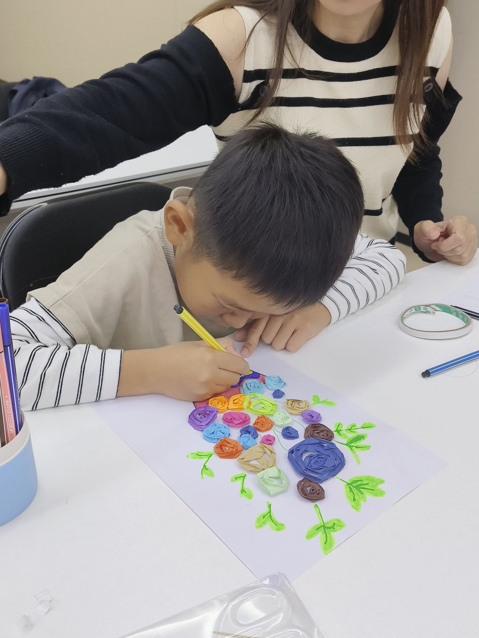 活动现场温馨和谐,孩子们纷纷展示自己制作的彩纸盆栽,每件作品都饱含创意与努力。恰逢国际儿童日,此次活动为儿童营造出欢乐有趣的节日氛围,让他们充分感受童年的欢乐与纯真。